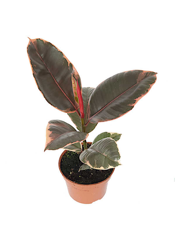 De bladeren zijn stevig en bont met kleuren in roze en donkergroen.