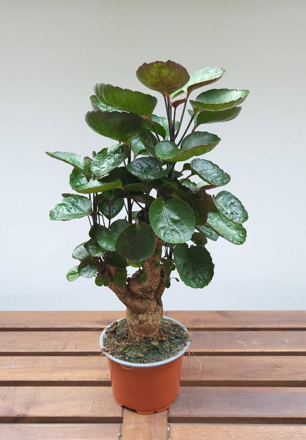 De Aralia polyscias scutellaria 'Fabian' heeft een stevige stam.