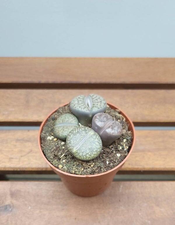 Lithops is oudgrieks en betekent steenachtig. Daarom worden deze plantjes ook wel levende steentjes genoemd.