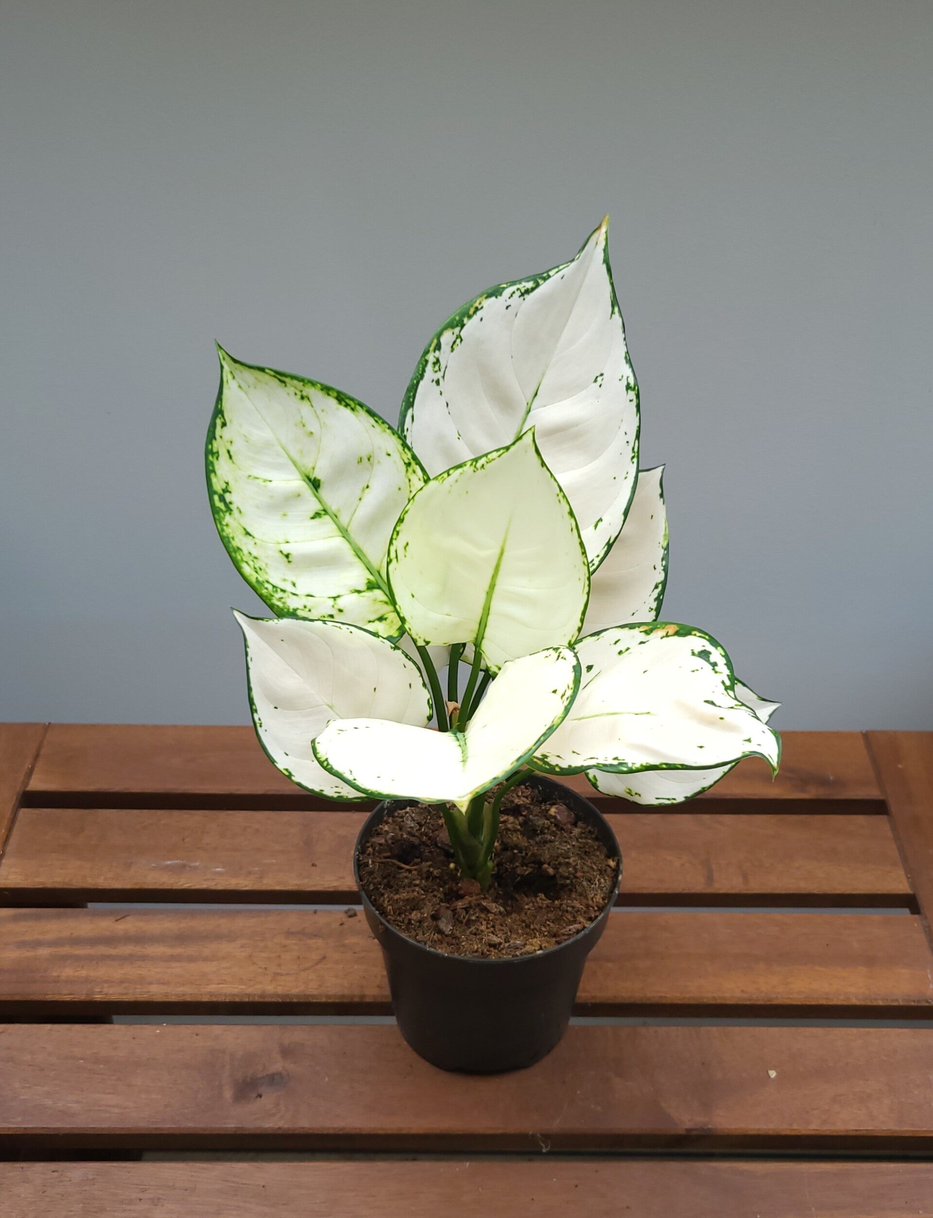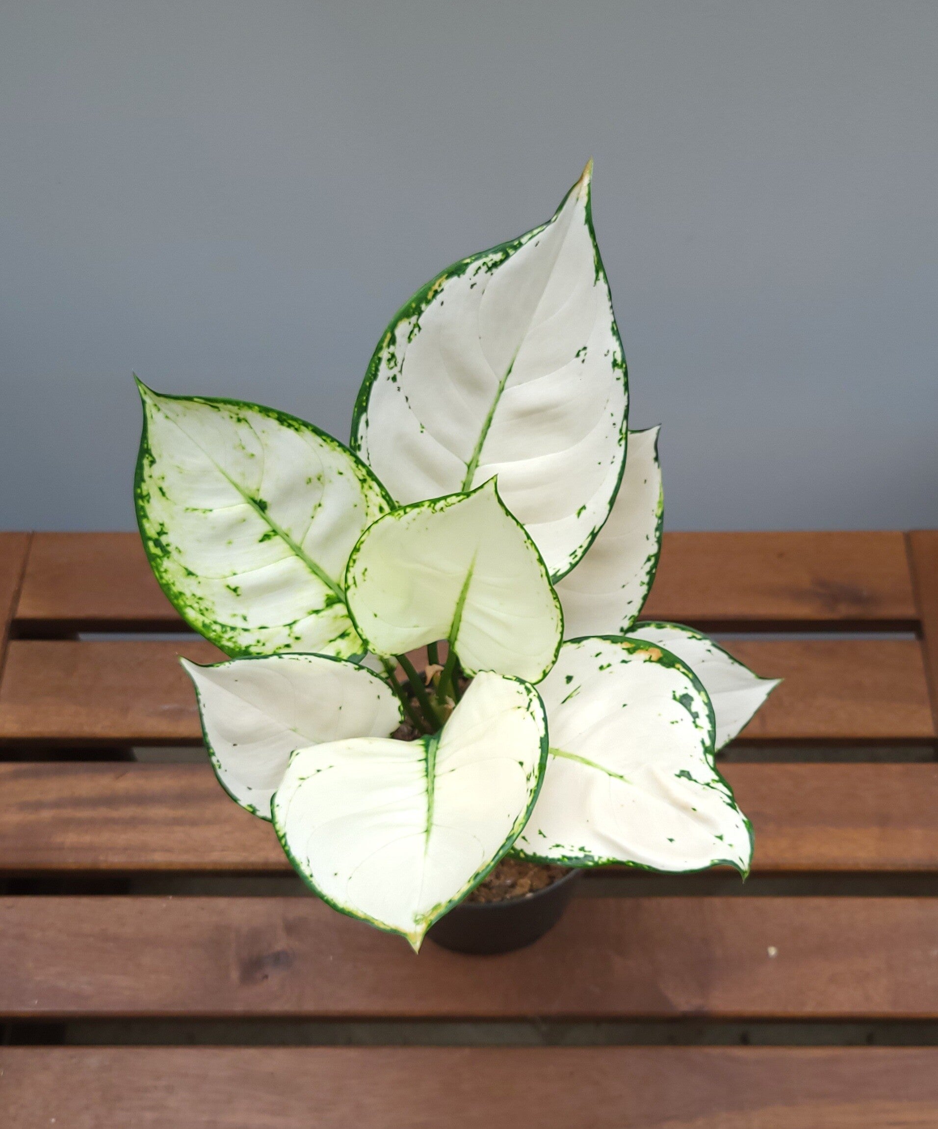 De Aglaonema 'White Joy' is een prachtige lichte kamerplant. De bladeren zijn nagenoeg helemaal wit.