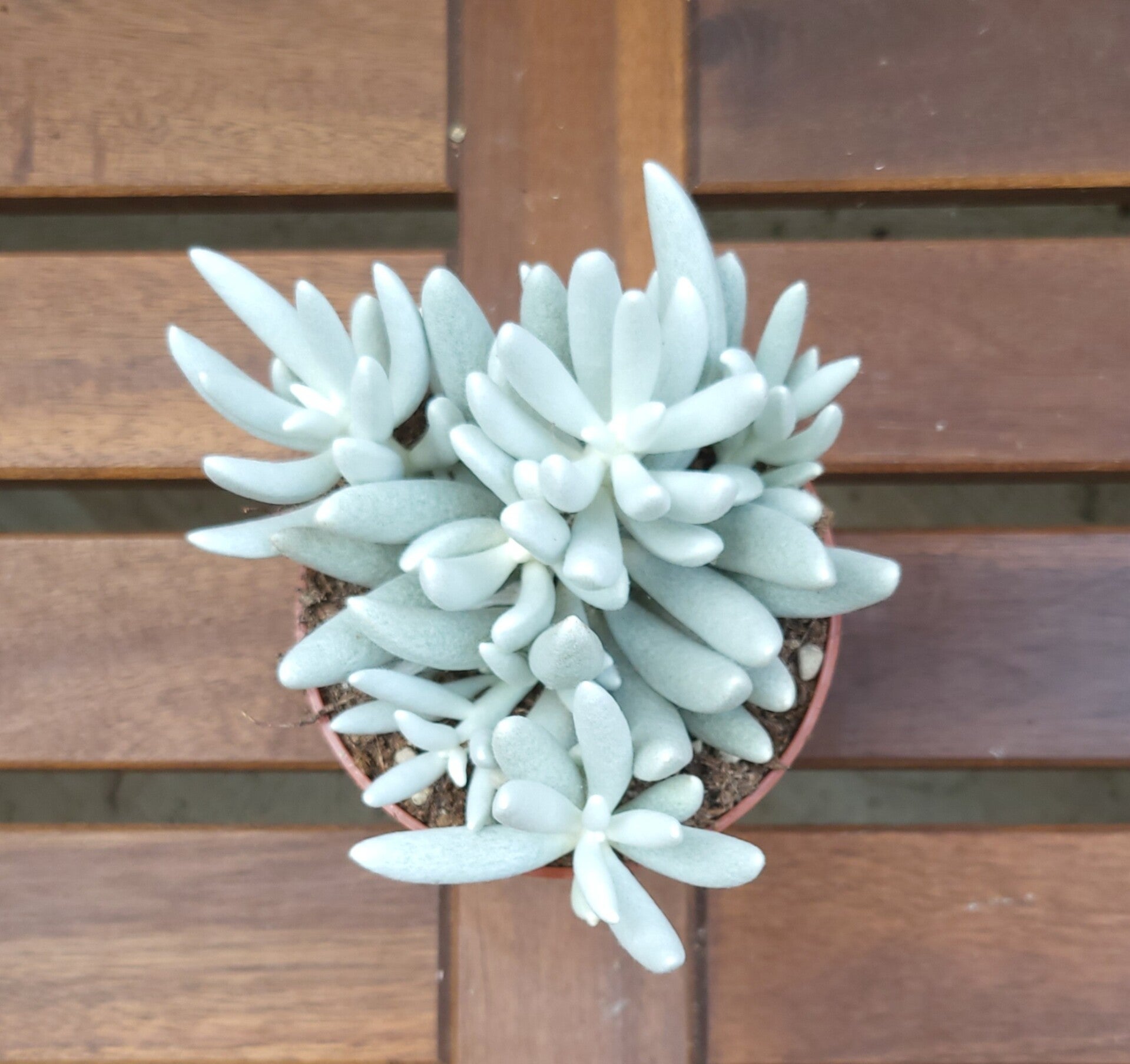 Deze plant heeft van nature deze mooie kleur. De bladeren zijn bedekt met hele kleine zachte witte haartjes.