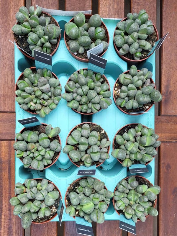 Water: Zeer weinig. In de winter (vanaf november) hoeven de plantjes helemaal geen water. Aan het einde van het voorjaar en in de zomer kan je af en toe water geven. Doe dit pas als de aarde erg droog aanvoelt.