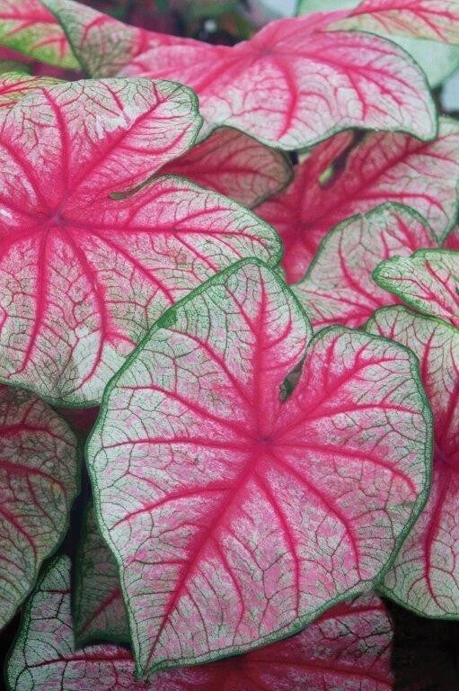 De Caladium is een bijzondere plant die niet vaak te verkrijgen is. De diversiteit aan patronen en kleuren is prachtig.