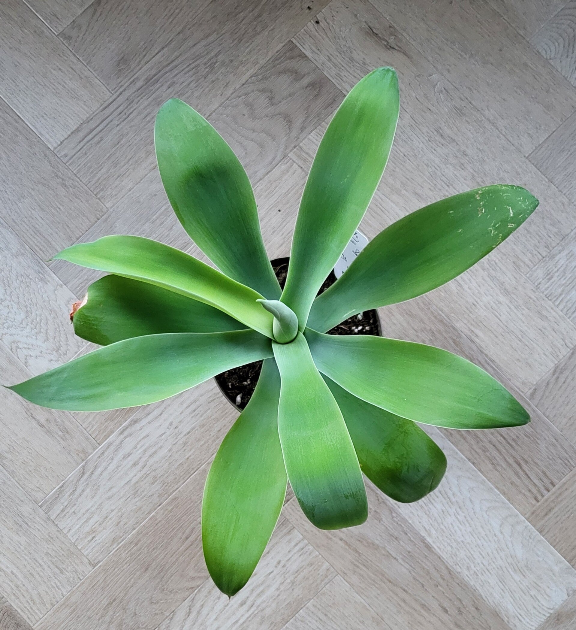 In tegenstelling tot zijn soortengenoten zijn de bladeren van de Agave 'Attenuata' soepel en zonder stekels. Ze hebben een frisgroene kleur. Net als andere agave maakt ook deze agave nieuwe bladeren aan waarna de onderste bladeren drogen.