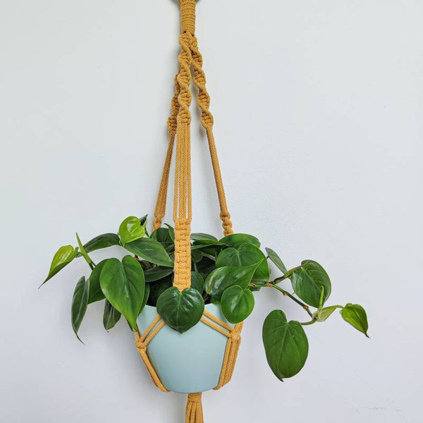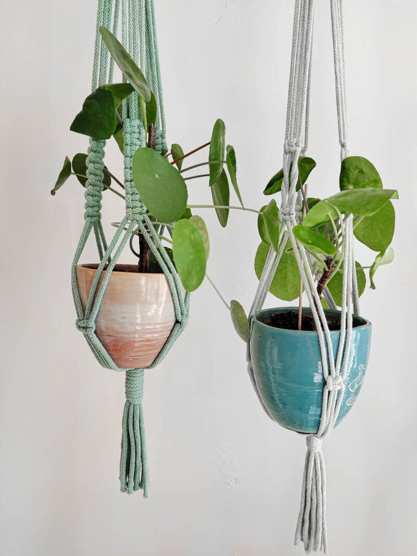 Voeg een vleugje bohemian charme toe aan je interieur met onze handgemaakte macramé plantenhanger. Deze stijlvolle en duurzame hanger is gemaakt van hoogwaardig gerecycled katoen en is perfect om je favoriete planten in de spotlight te zetten zonder vloeroppervlak in te nemen.
