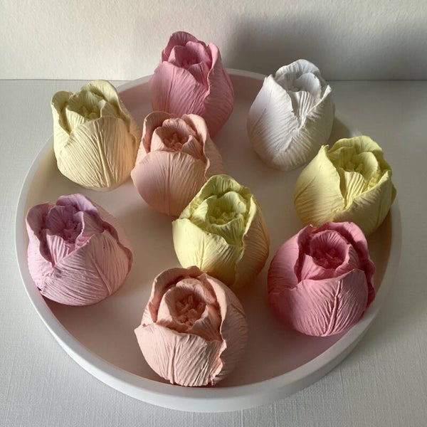Afmeting tulpjes: 4 x 5 cm - Keuze uit wit - licht geel - pastel geel - zalm - licht roze - iets feller roze