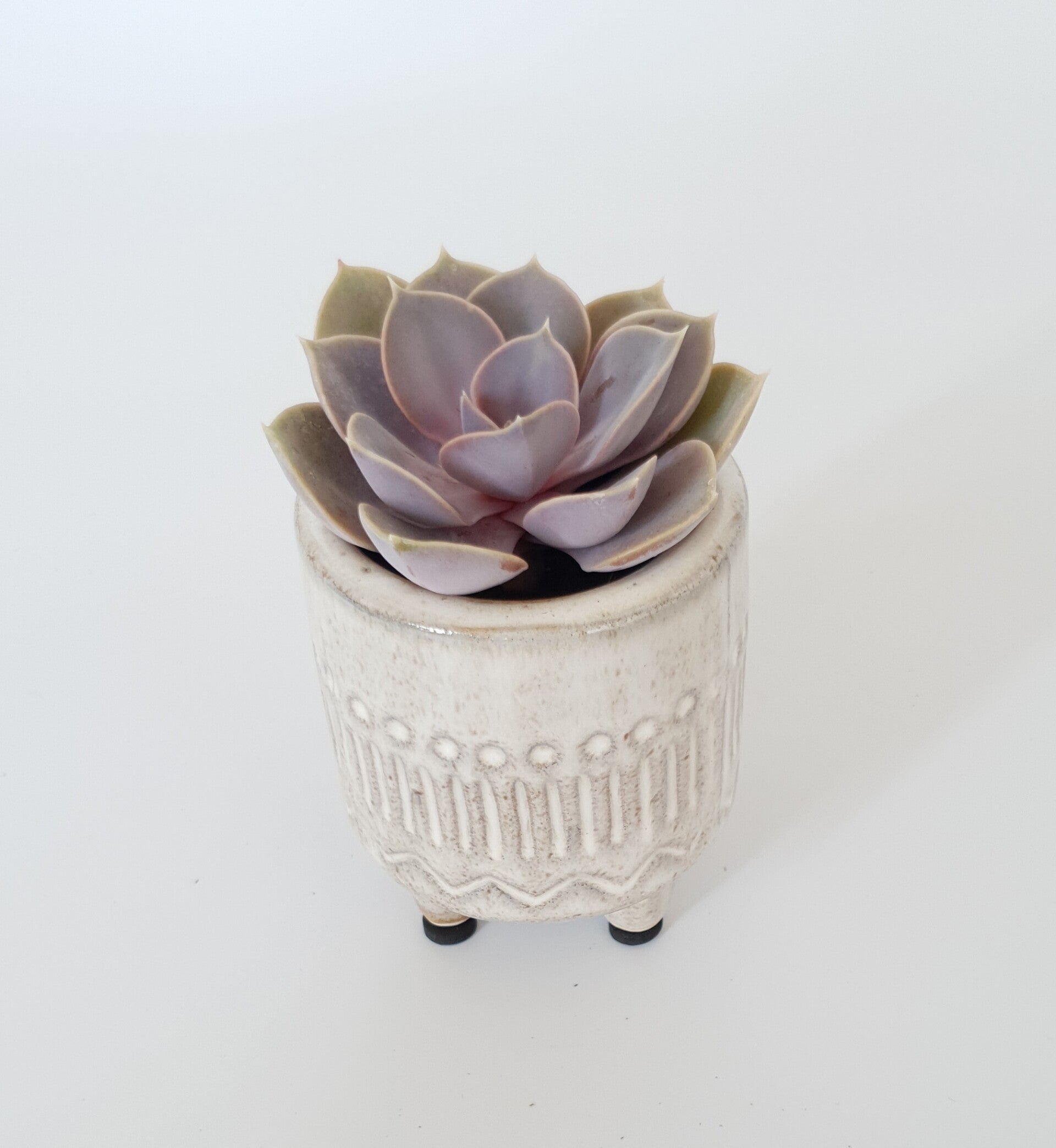 Het bloempotje is uitgevoerd met pootjes.