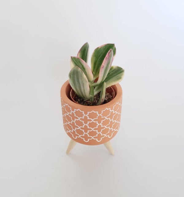 Deze leuk bewerkte potjes hebben houten pootjes en zijn gevuld met een mooie succulent.