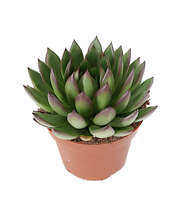 Deze succulent heeft een licht glanzend blad met paars/rode uiteinde.