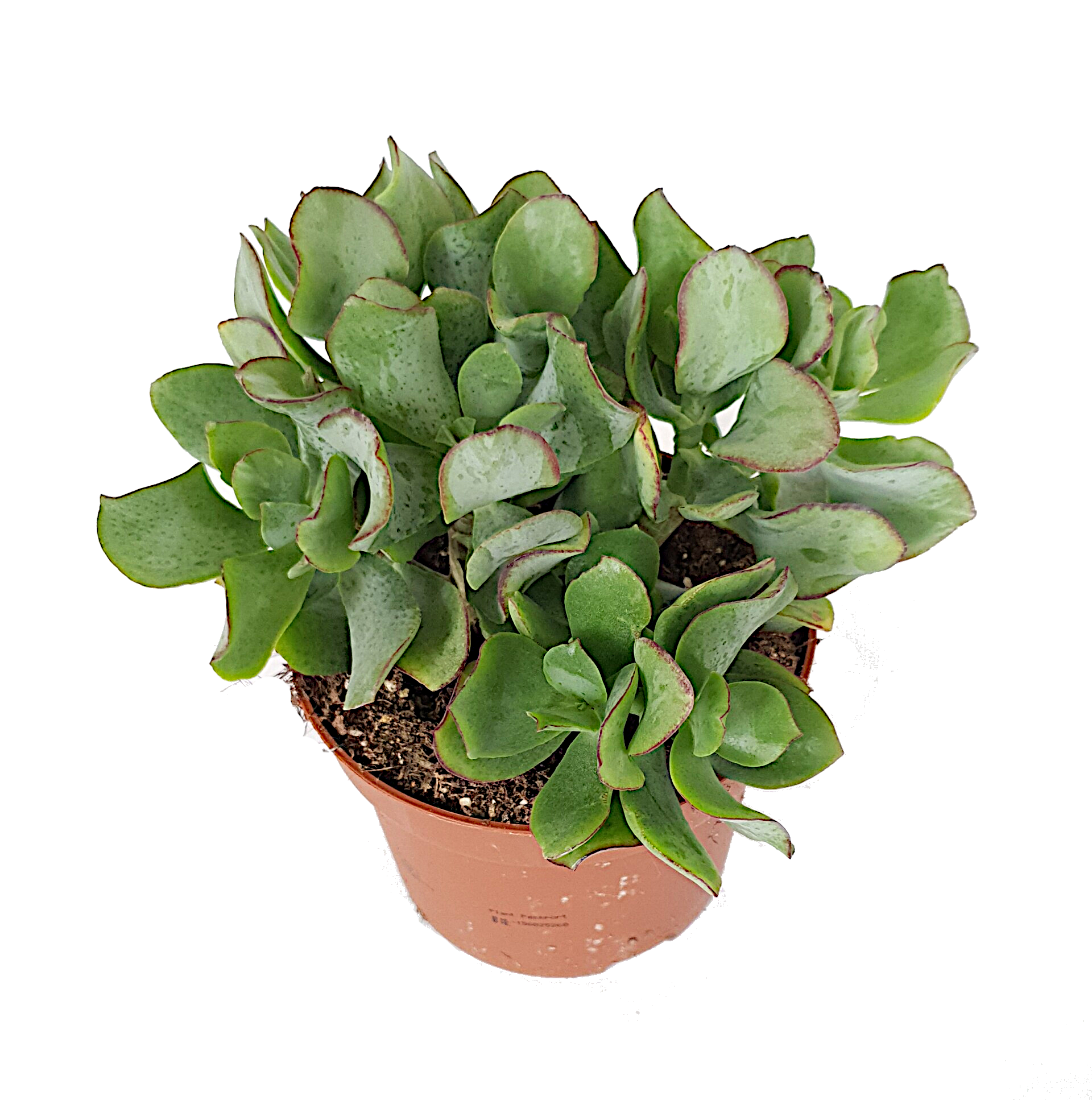 Deze succulent heeft licht golvende bladeren met een bruin/ rood randje.