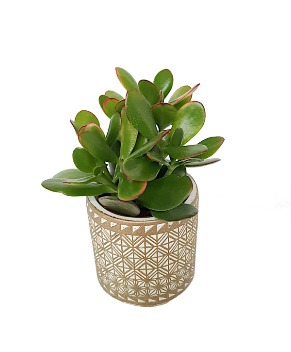 Mooie stevige bloempot met pootjes en een leuk motief.