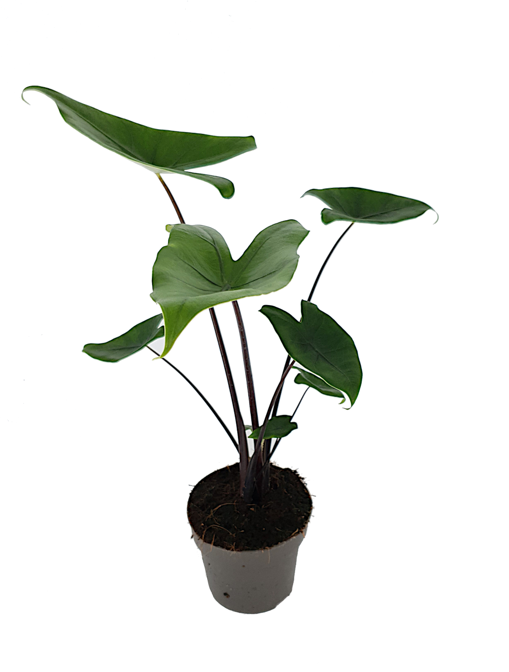 De Alocasia staat bekend om zijn aparte blad en bijzondere bladstelen. De plant wordt daarom ook wel olifantsoor genoemd. De bladstelen van deze plant zijn zwart van kleur.