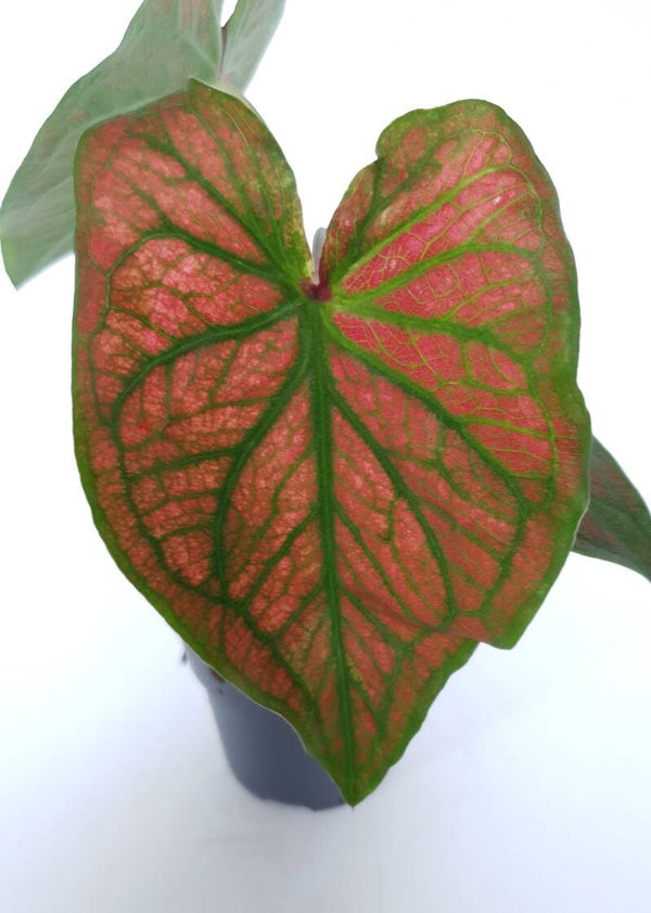 De Caladium is een bijzondere plant die uitsluitend in het voorjaar wordt aangeboden. De diversiteit aan patronen en kleuren is prachtig.
