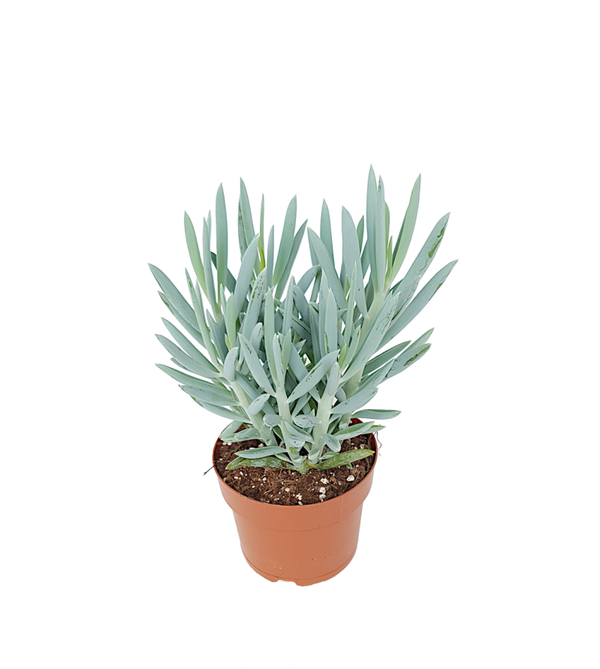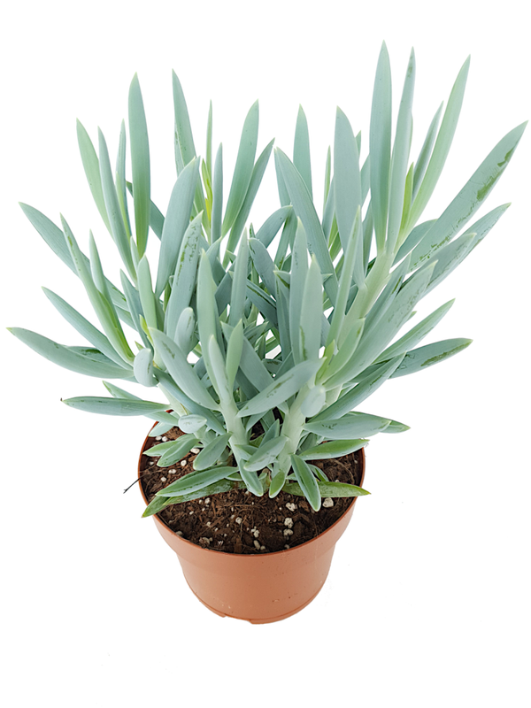 De bladeren zijn bedekt met een grijsblauwe waslaag en laat zicht goed combineren met potten in allerlei vormen en kleuren.