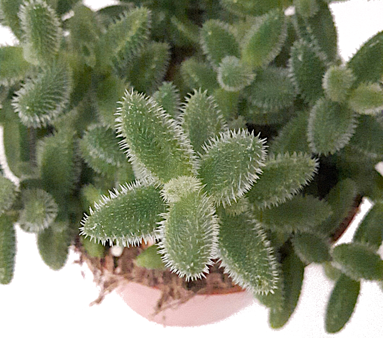 De Delosperma echinatum wordt ook wel ‘Augurkenplantje’ of ‘Pickle-plant’ genoemd. De plant heeft kleine augurkvormige bladeren die bedekt zijn met witte haartjes.