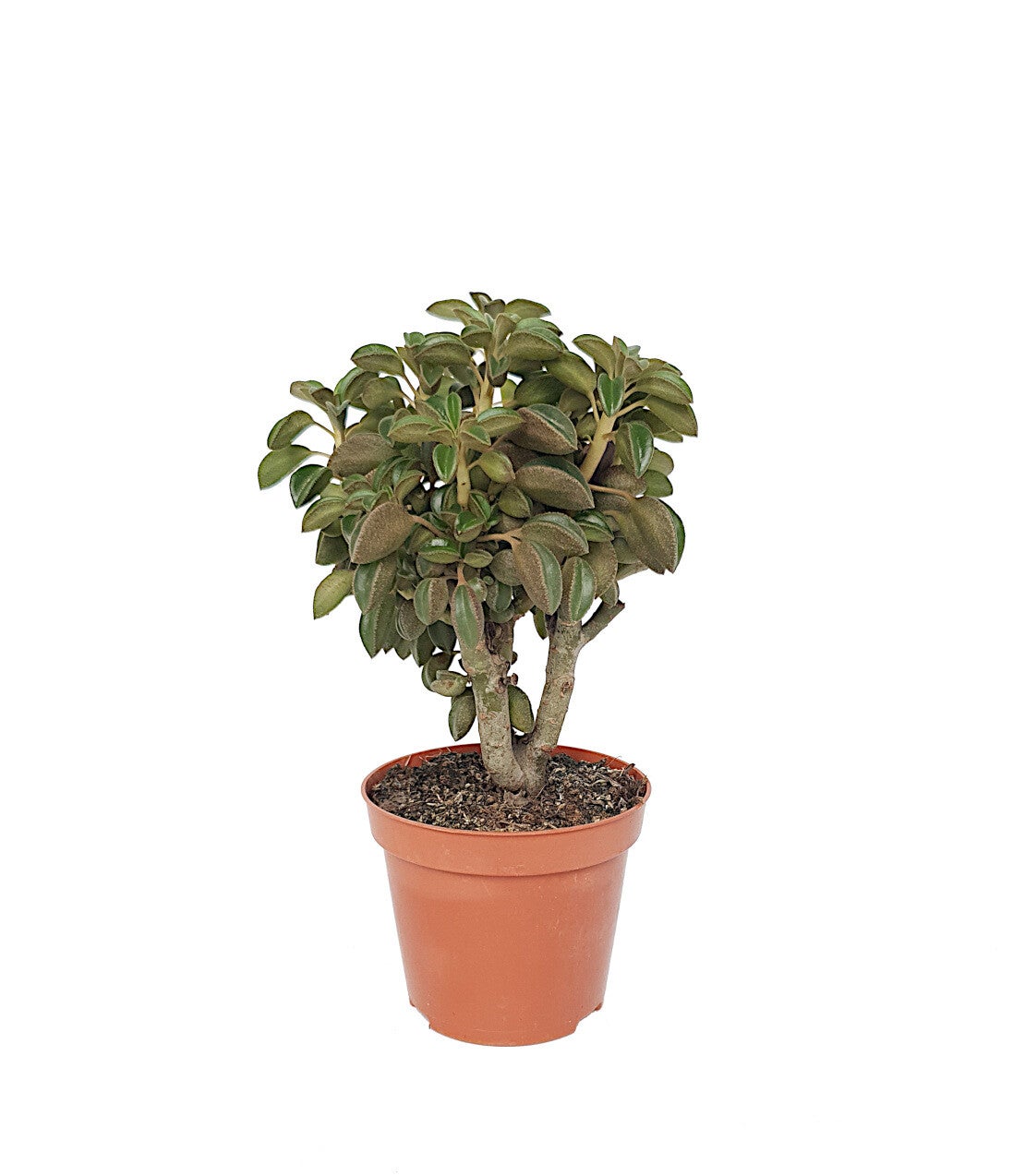 Peperomia Asperula is een mini boompje met kleine 'dubbelgevouwen' blaadjes.