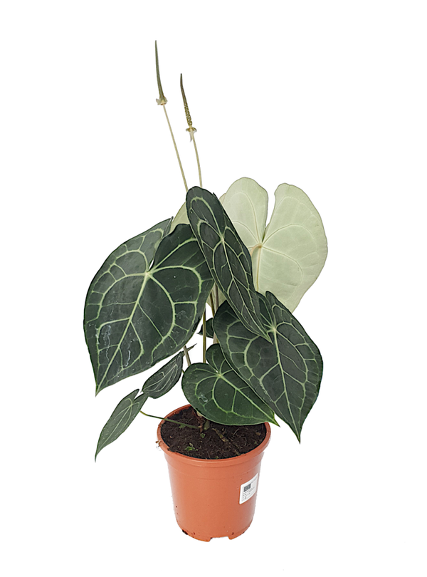 Deze bijzondere plant heeft bladeren in de vorm van een hart met prachtige witte aderen en een fluweelachtige touch.