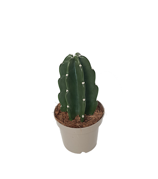 Deze knuffelige cactussoort heeft geen stekels maar kleine haartjes in de 'uitsparingen'.
