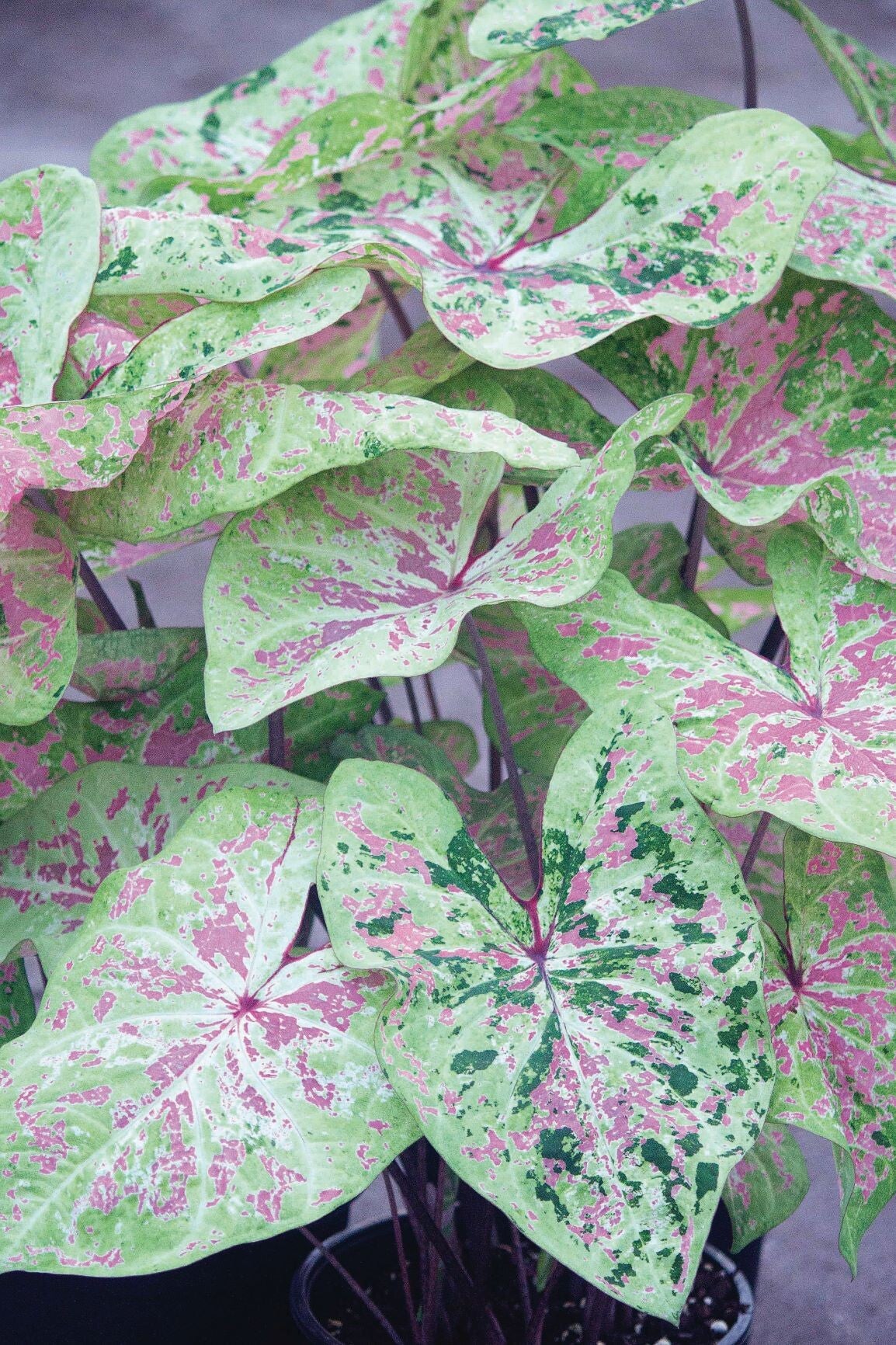 De Caladium is een bijzondere plant die niet vaak te verkrijgen is. De diversiteit aan patronen en kleuren is prachtig.