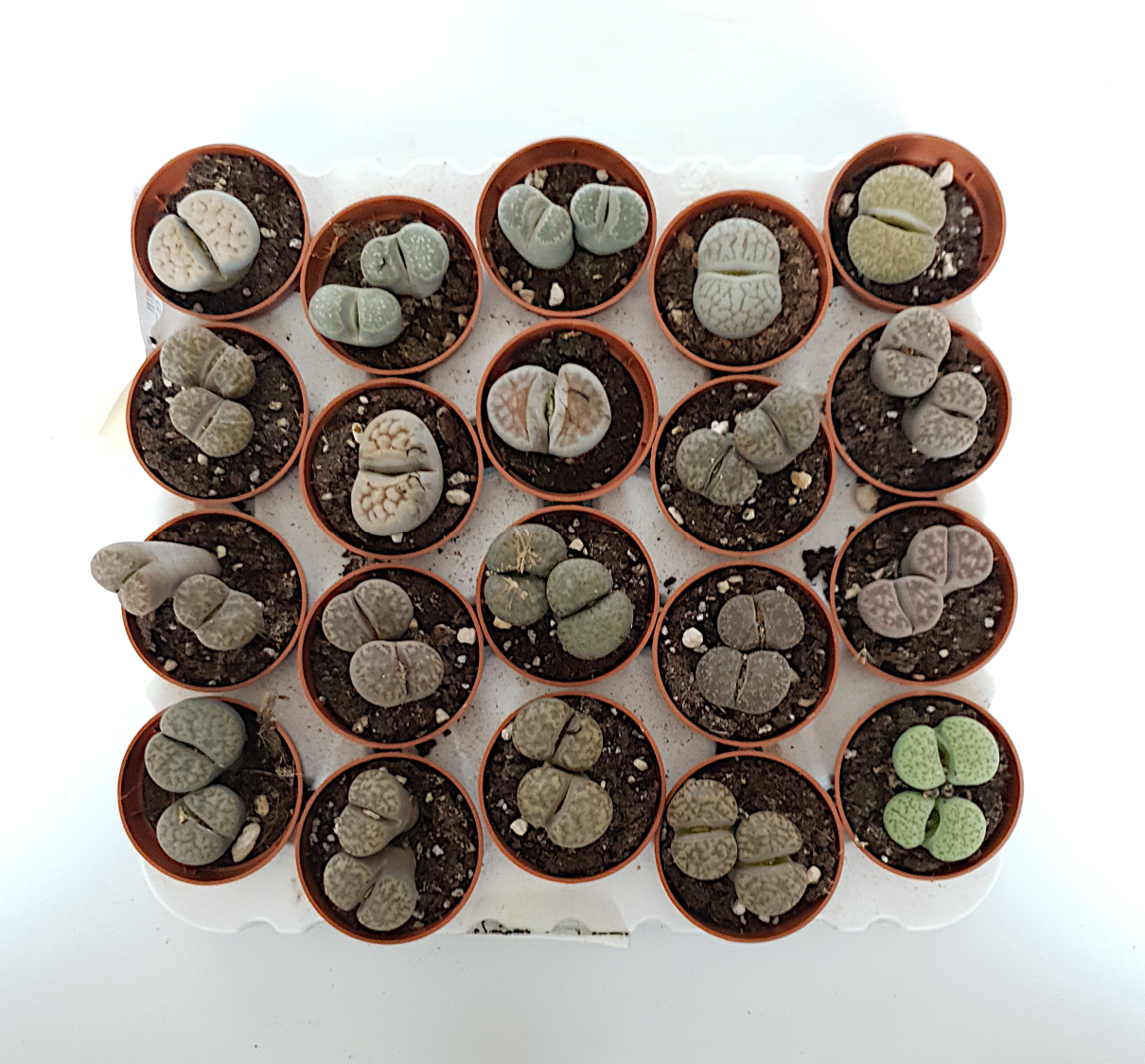 Water: Zeer weinig. In de winter (vanaf november) hoeven de plantjes helemaal geen water. Aan het einde van het voorjaar en in de zomer kan je af en toe water geven. Doe dit pas als de aarde erg droog aanvoelt.