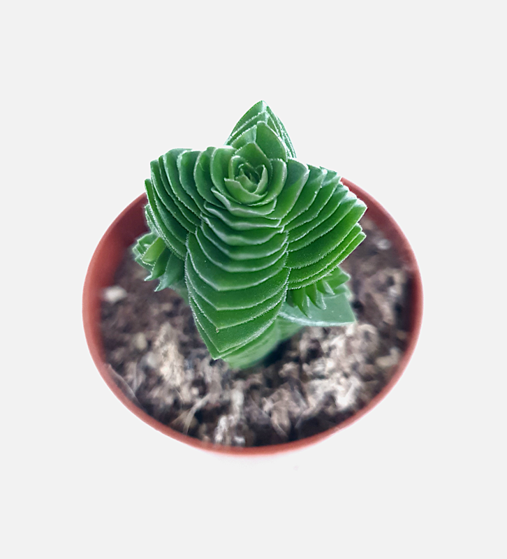 De Crassula 'Buddha's Temple' is een bijna perfect symmetrische plant. Zijn naam heeft hij te danken aan zijn vorm.