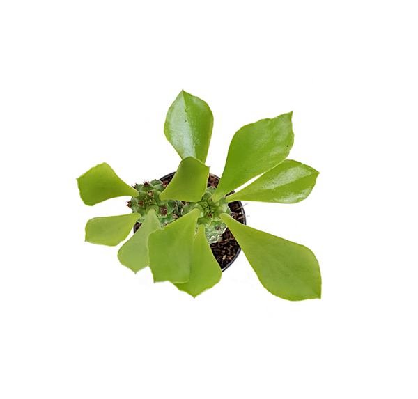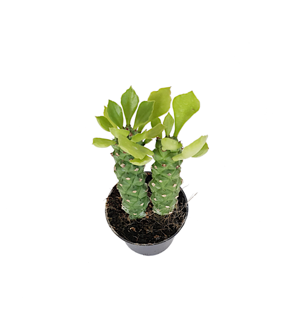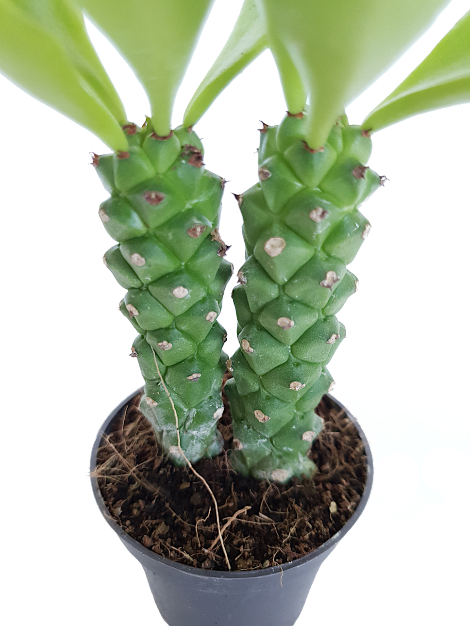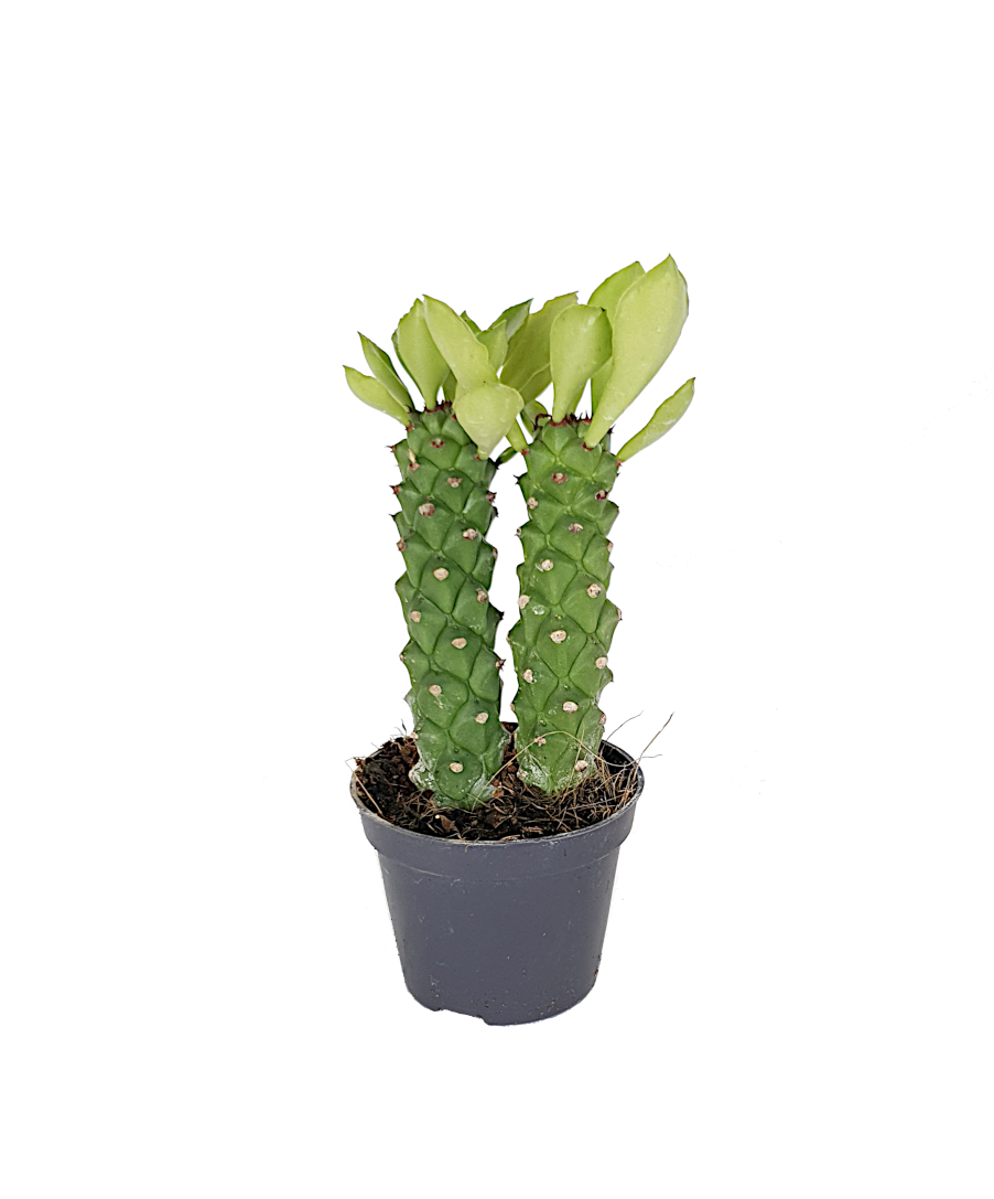 De Euphorbia monadenium is een recht omhoog groeiende plant met bovenop een 'kam'.