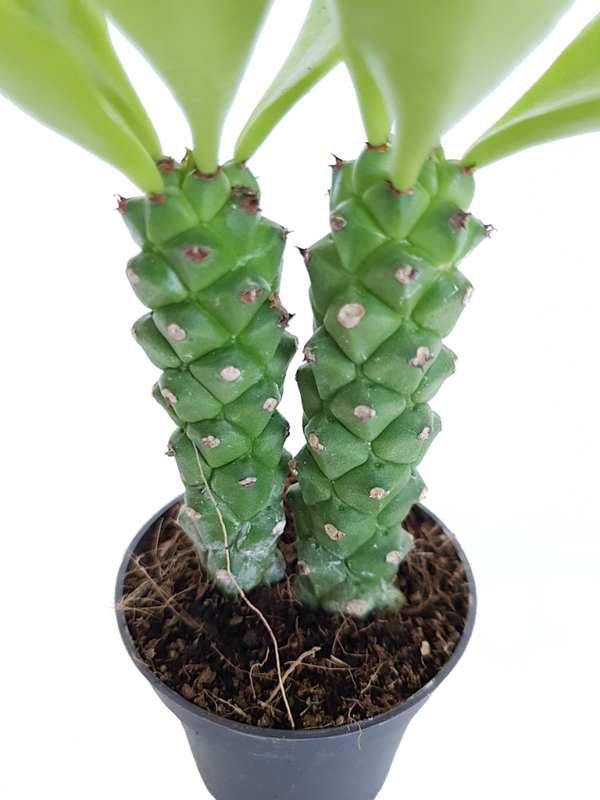 Zijn stam is knolvormig, wat het uiterlijk van deze plant nog eens extra bijzonder maakt.
