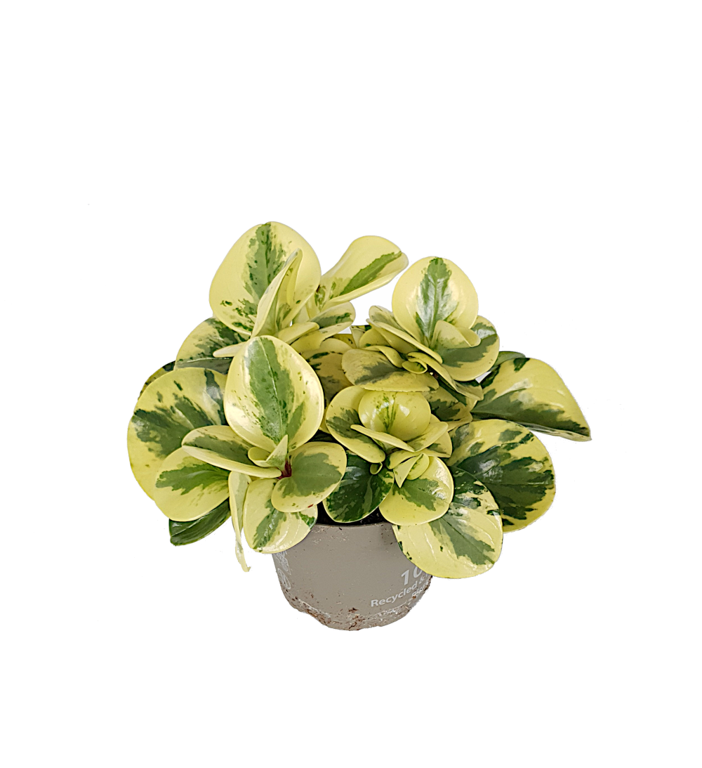 Deze Peperomia heeft verschilende kleuen in zijn blad. Van zacht-geel tot lichtgroen en donkergroen.