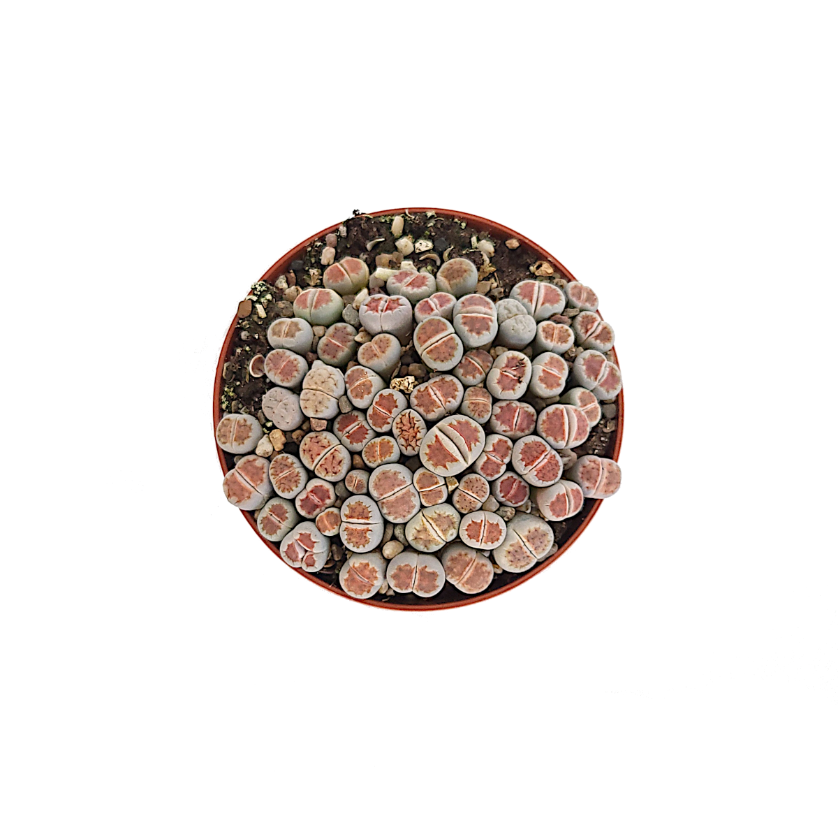 Lithops is oudgrieks en betekent steenachtig. Daarom worden deze plantjes ook wel levende steentjes genoemd.