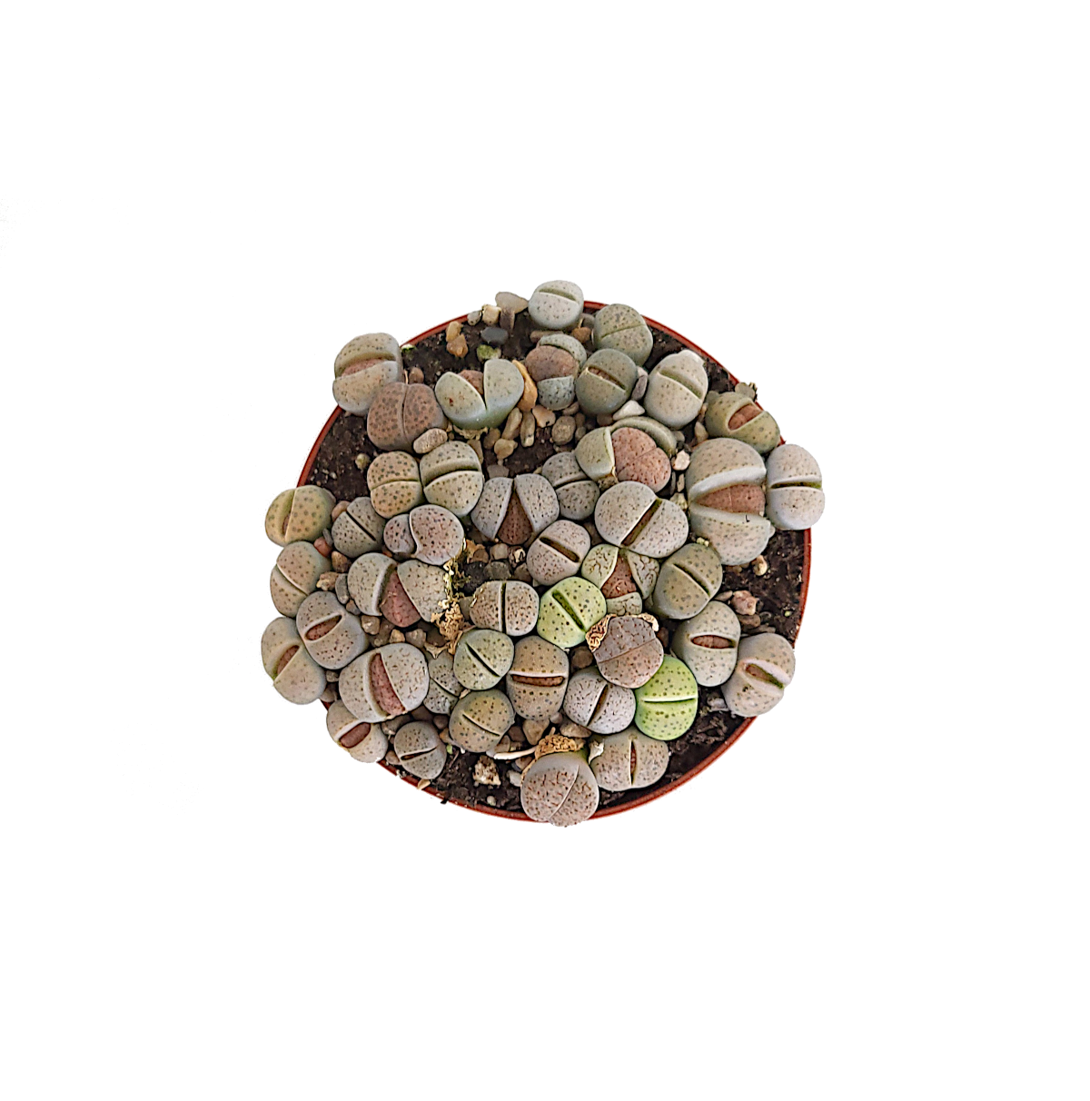 Lithops is oudgrieks en betekent steenachtig. Daarom worden deze plantjes ook wel levende steentjes genoemd.