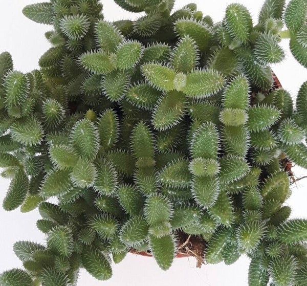 De Delosperma echinatum wordt ook wel ‘Augurkenplantje’ of ‘Pickle-plant’ genoemd. De plant heeft kleine augurkvormige bladeren die bedekt zijn met witte haartjes.